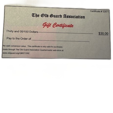 Gift Certificate for $30.00 value toward any product(s) sold on TOGA Quartermaster website store. Special offer good through December 15, 2025 — priced at $27.00 for $30.00 value. + TOGA members with membership sign-on receive normal 10% price discount.